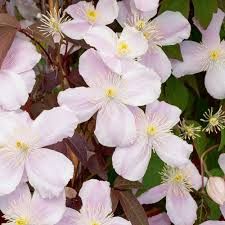 - 1 Clématis montana 'mayleen' : floraison printanière en mai, rose tendre parfumée, feuillage caduc, vert moyen.