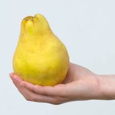 Elle produit de très gros fruits jaunes en forme de poire à la peau fine et và la chair parfumée.